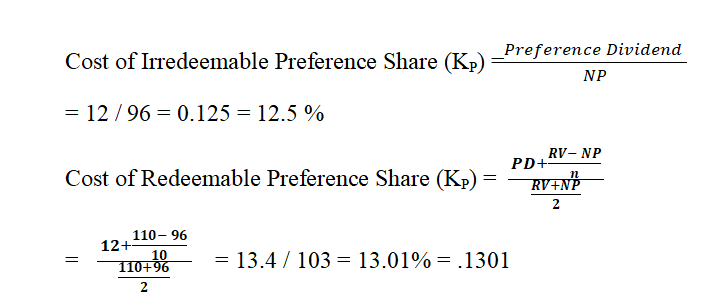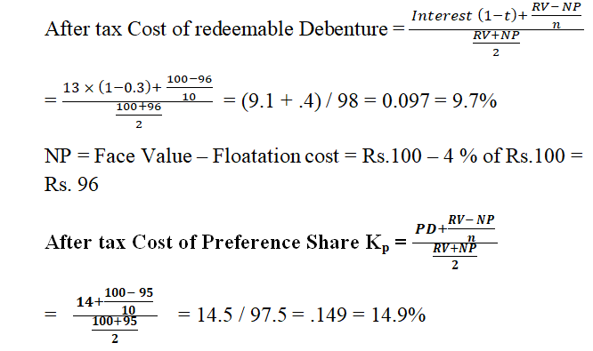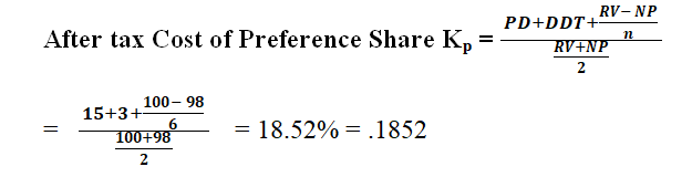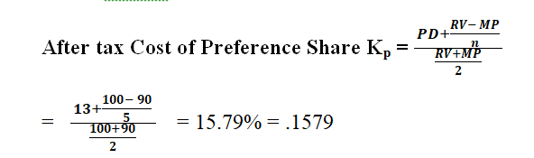 After tax Cost of Preference Share (Kp) = 13.5 % = 0.135