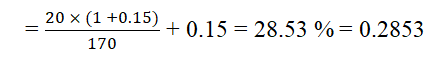 = (4/57) + 0.1 = 17.02 % = 0.1702