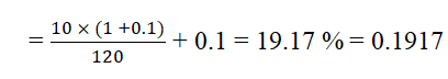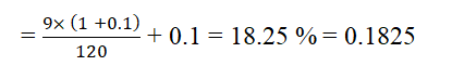 = (10/120) + 0.1 = 0.1833 = 18.33 %