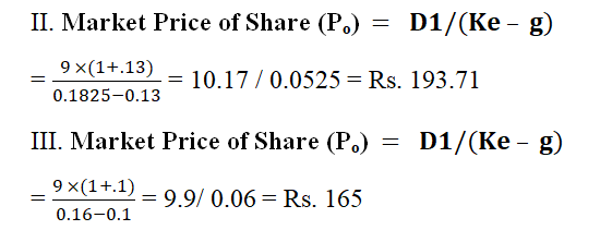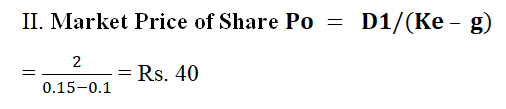 The market price of the company’s share is Rs. 120 and it is expected that a dividend of Rs. 10 per share would be declared after 1 year. The dividend growth rate is 10%: