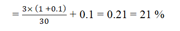 = (3.3/30) + 0.1 = 0.21 = 21 %
