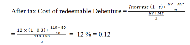RV = Redeemable Value = FV + Premium on redemption = Rs.100 + Rs. 10 = Rs. 110